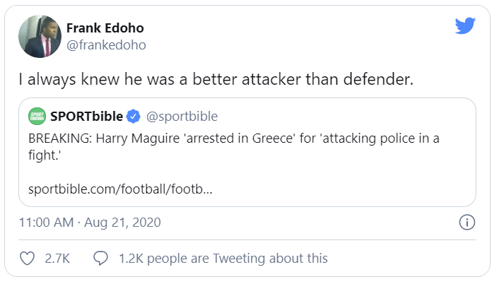 Reacting to the news, popular Nigerian show host and former anchor of Who Wants To Be A Millionaire, Frank Edoho mocked the English footballer by referencing his playing position on his team.